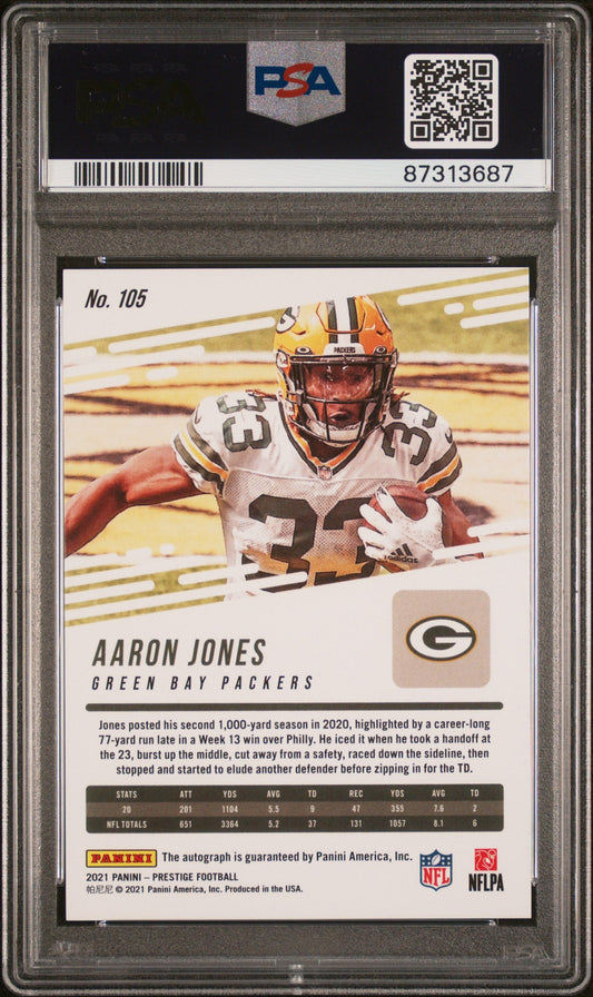 2021 Panini Prestige Aaron Jones #105 SIG Blue Premium XP 07/20 PSA 10