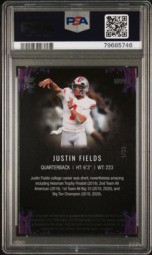 2021 Wild Card Matte Black- Red Hot RC Auto Justin Fields #MRHR2 Purple PSA 9