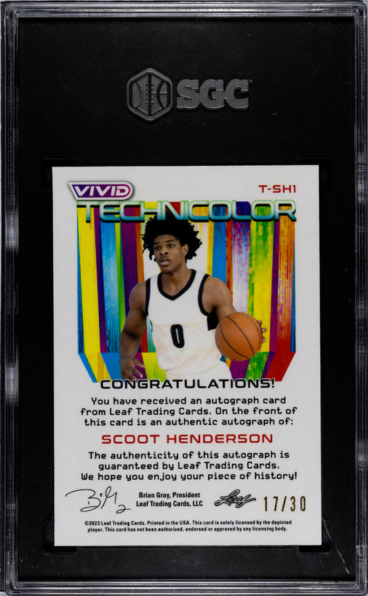 2022 Leaf Vivid Scoot Henderson #T-SH1 Technicolor Autograph Navy Blue SGC 9.5