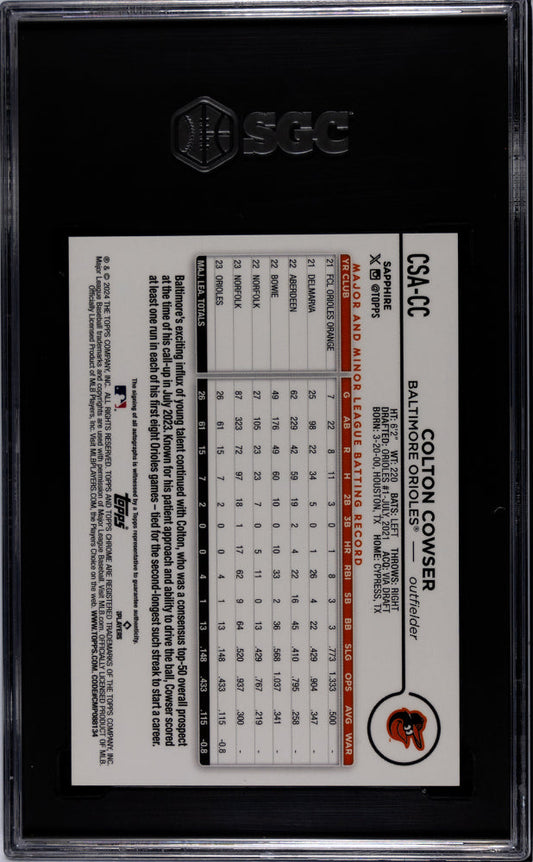 2024 Topps Chrome Sapphire Colton Cowser #CSA-CC Autograph Green SGC 9.5 Auto 10