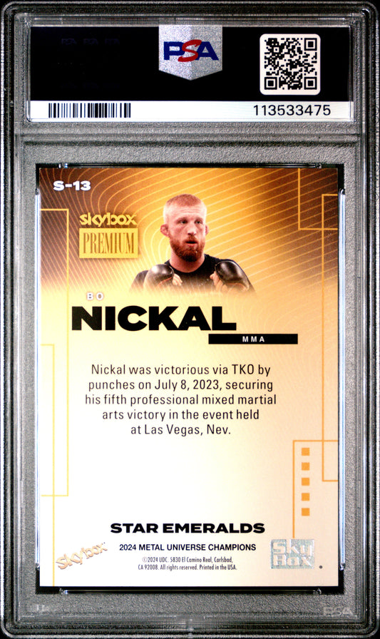 2024 Skybox Metal Universe Champions Skybox Premium Bo Nickal #S13 Star Emerald PSA 9