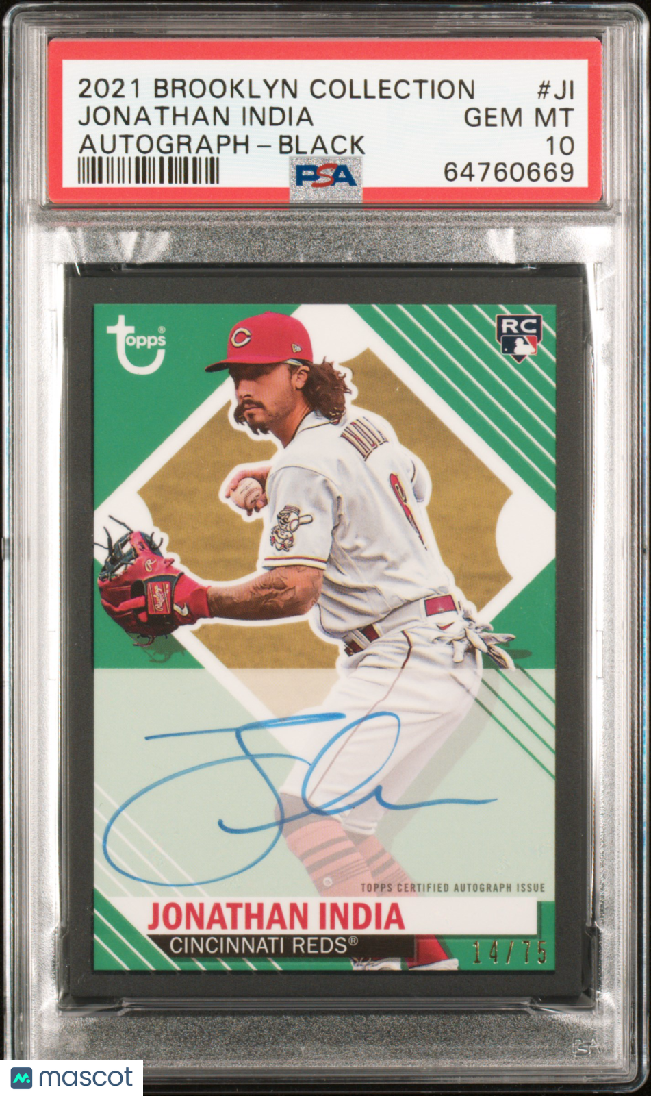 2021 Topps Brooklyn Collection Autograph Jonathan India #JI Black 14/75 PSA 10