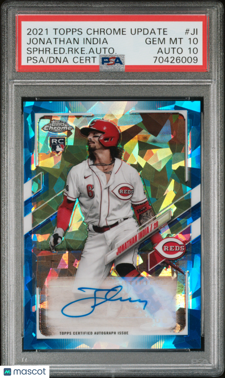 2021 Topps Chrome Sapphire RC Auto Jonathan India #JI. Ed. RKE. PSA 10 Auto 10