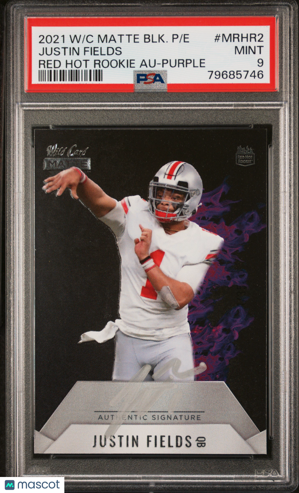 2021 Wild Card Matte Black- Red Hot RC Auto Justin Fields #MRHR2 Purple PSA 9