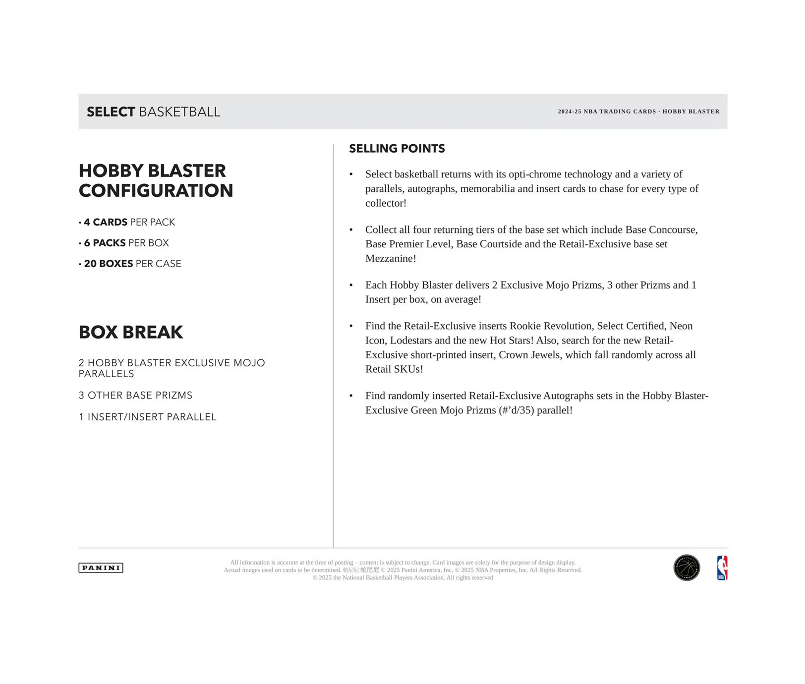 2024-25 Panini Select Basketball Hobby Blaster Box
