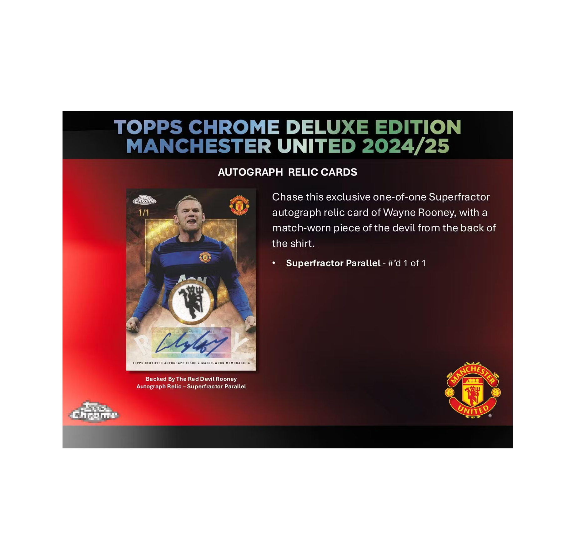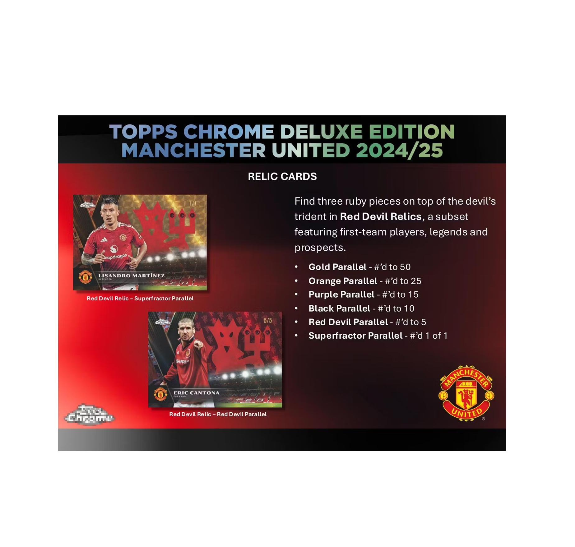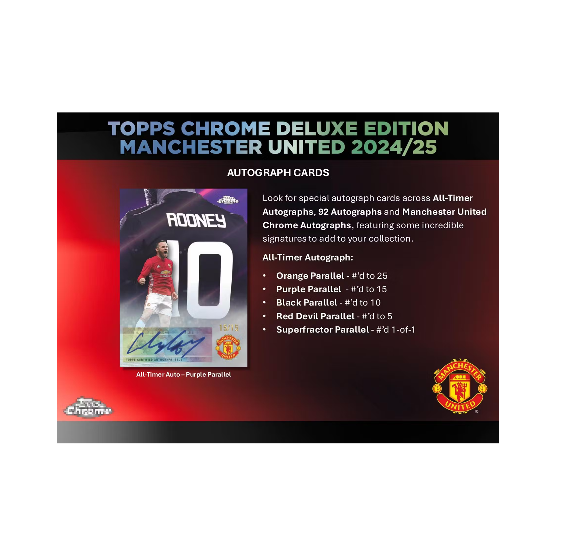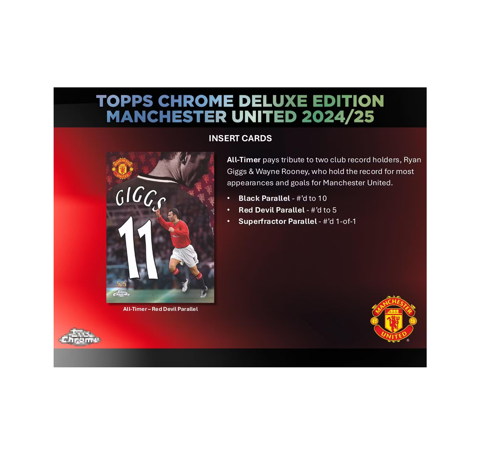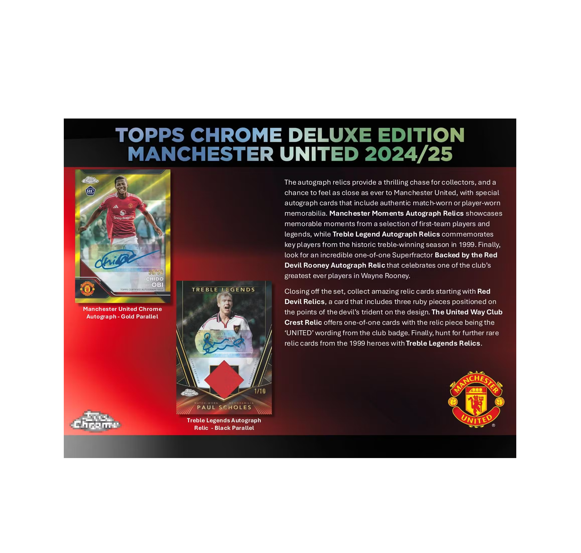 - Topps are delighted to reveal the brand-new Topps Chrome Deluxe Edition Manchester United 2024/25, a special chrome collection featuring some of the Red Devils’ biggest legends, current stars and future icons!