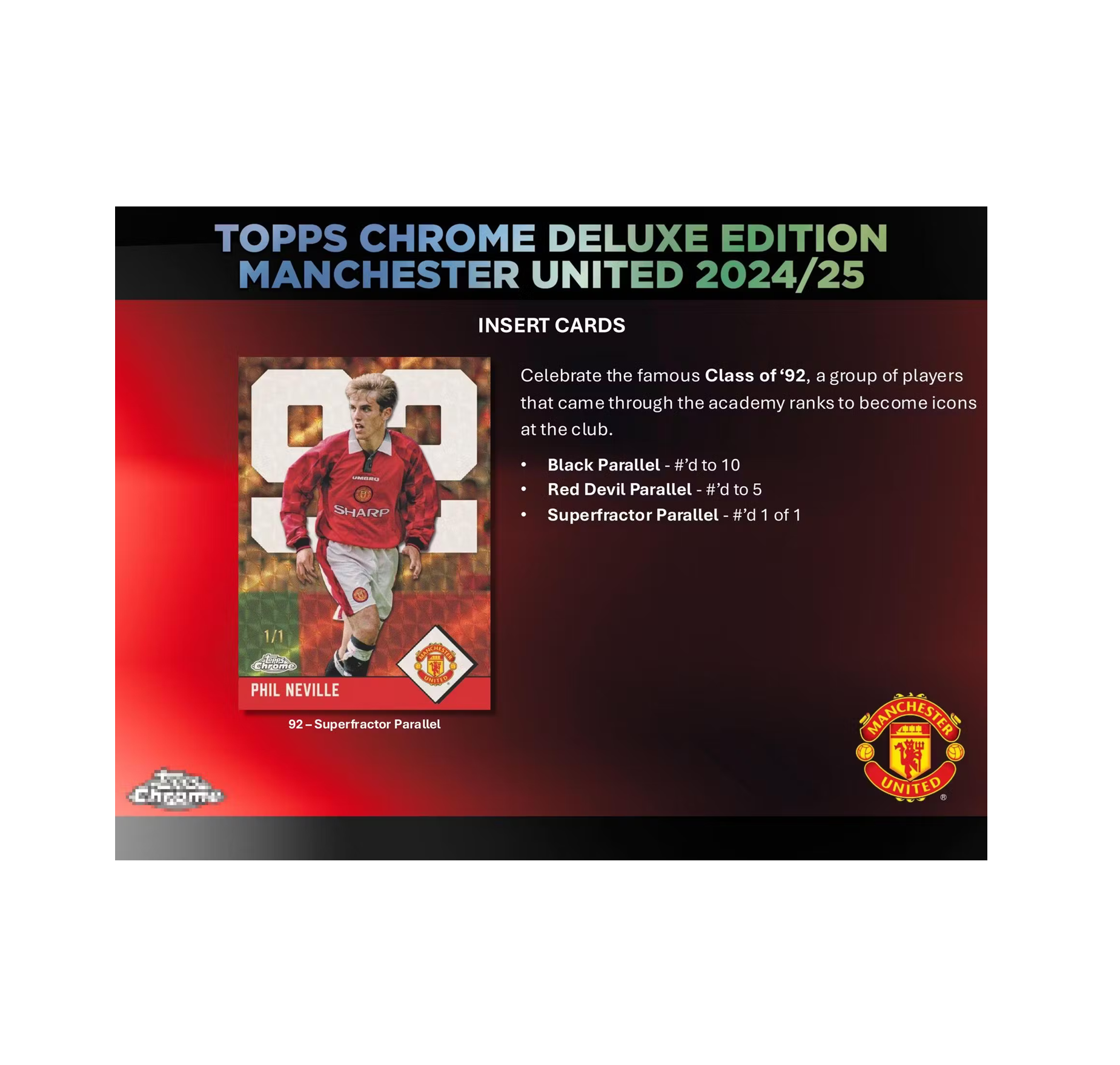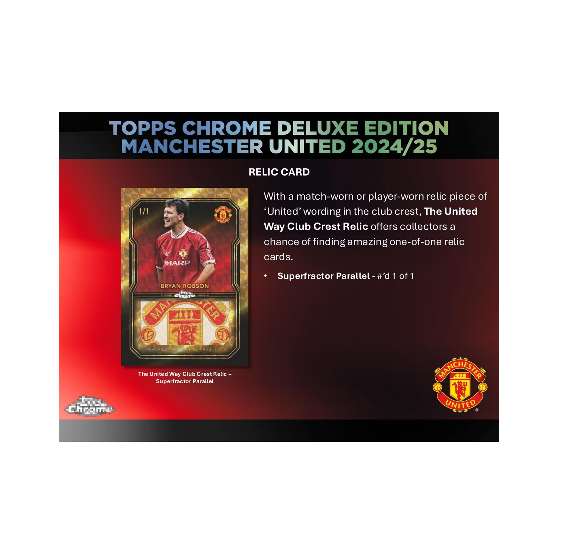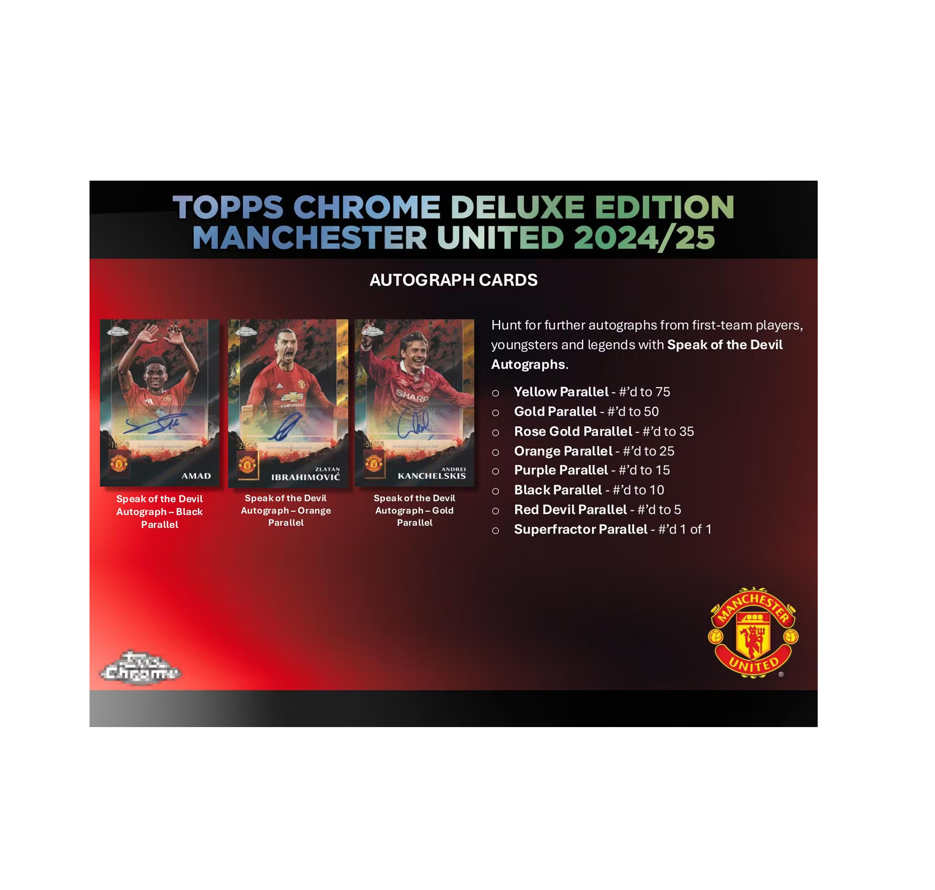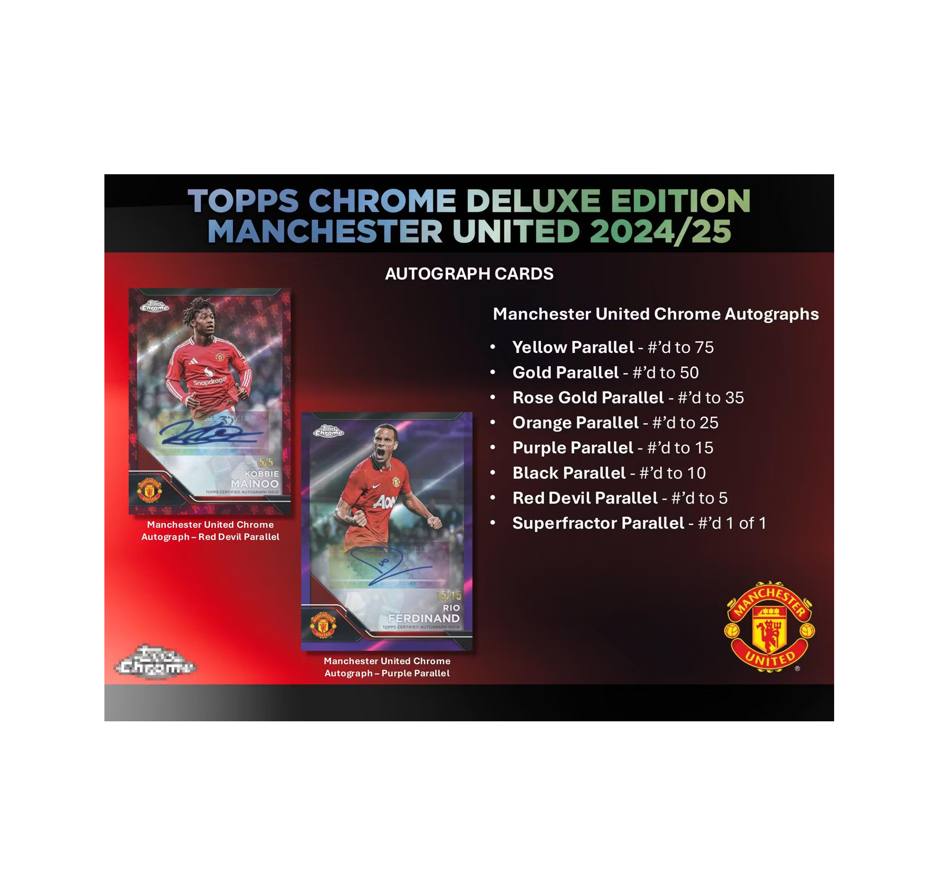 - Topps are delighted to reveal the brand-new Topps Chrome Deluxe Edition Manchester United 2024/25, a special chrome collection featuring some of the Red Devils’ biggest legends, current stars and future icons!
