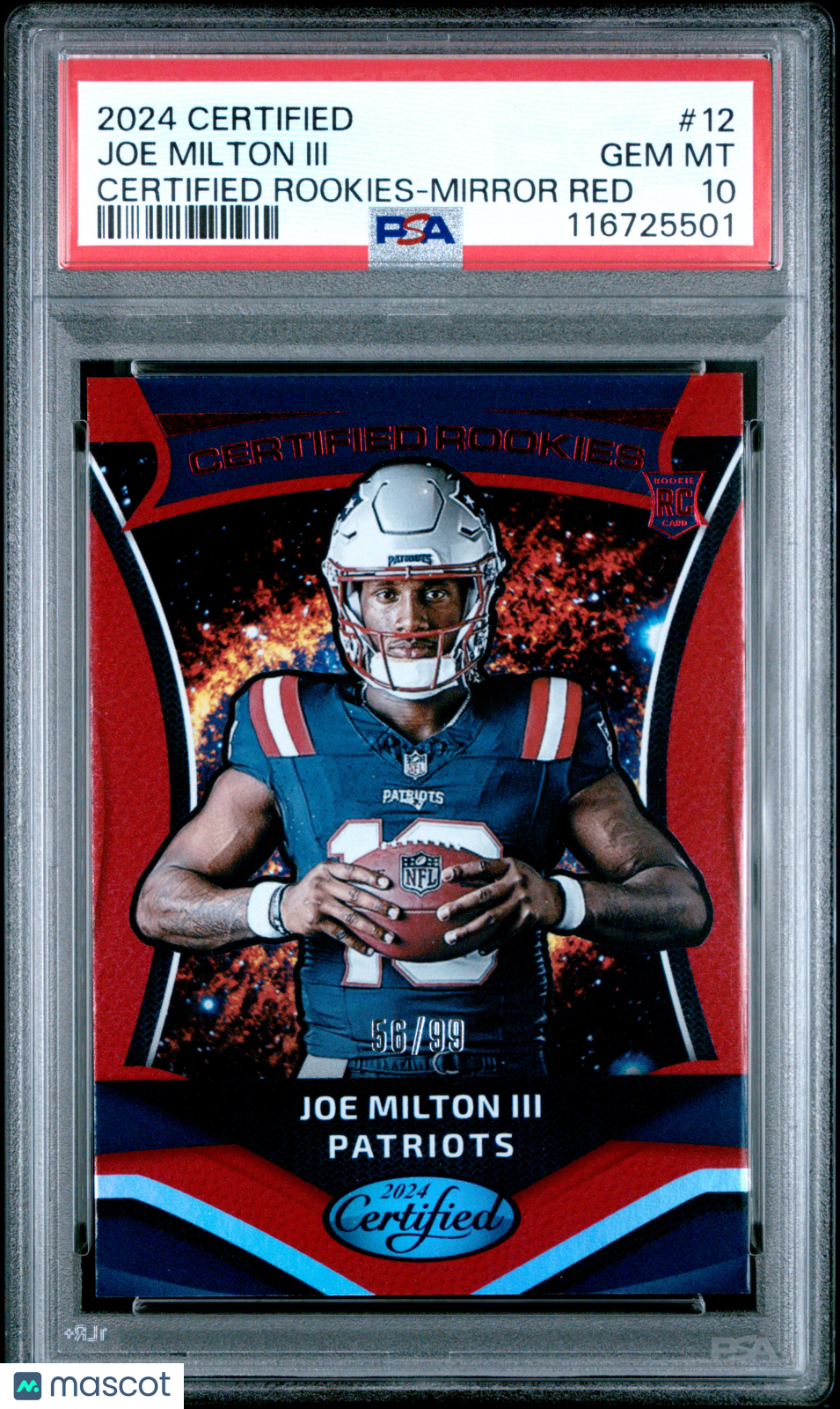 2024 Panini Certified Certified Rookies Joe Milton III #12 Red 56/99 PSA 10
