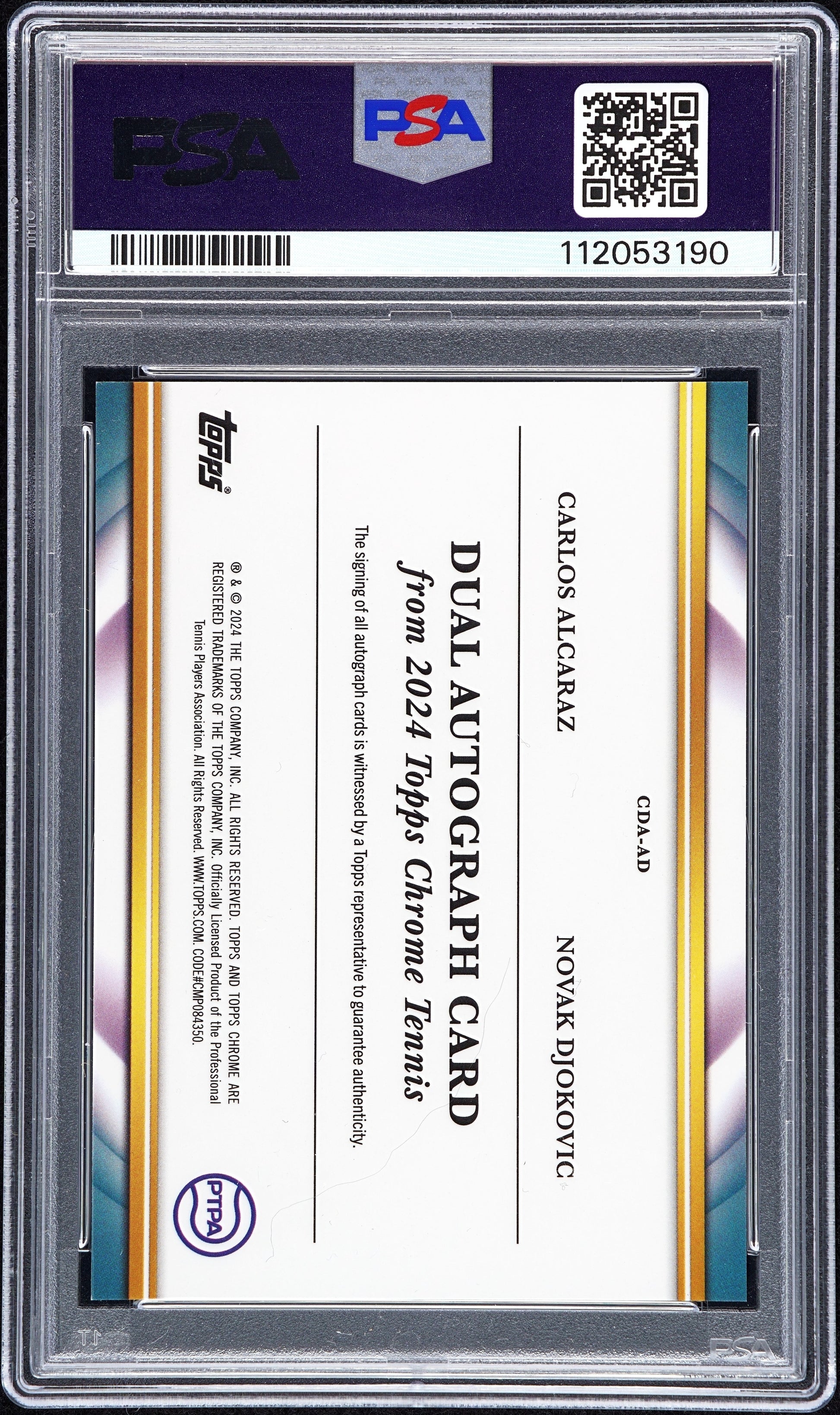 2024 Topps Chrome Tennis Dual Auto Alcaraz Djokovic #CDAAD Refractor 8/10 PSA 10