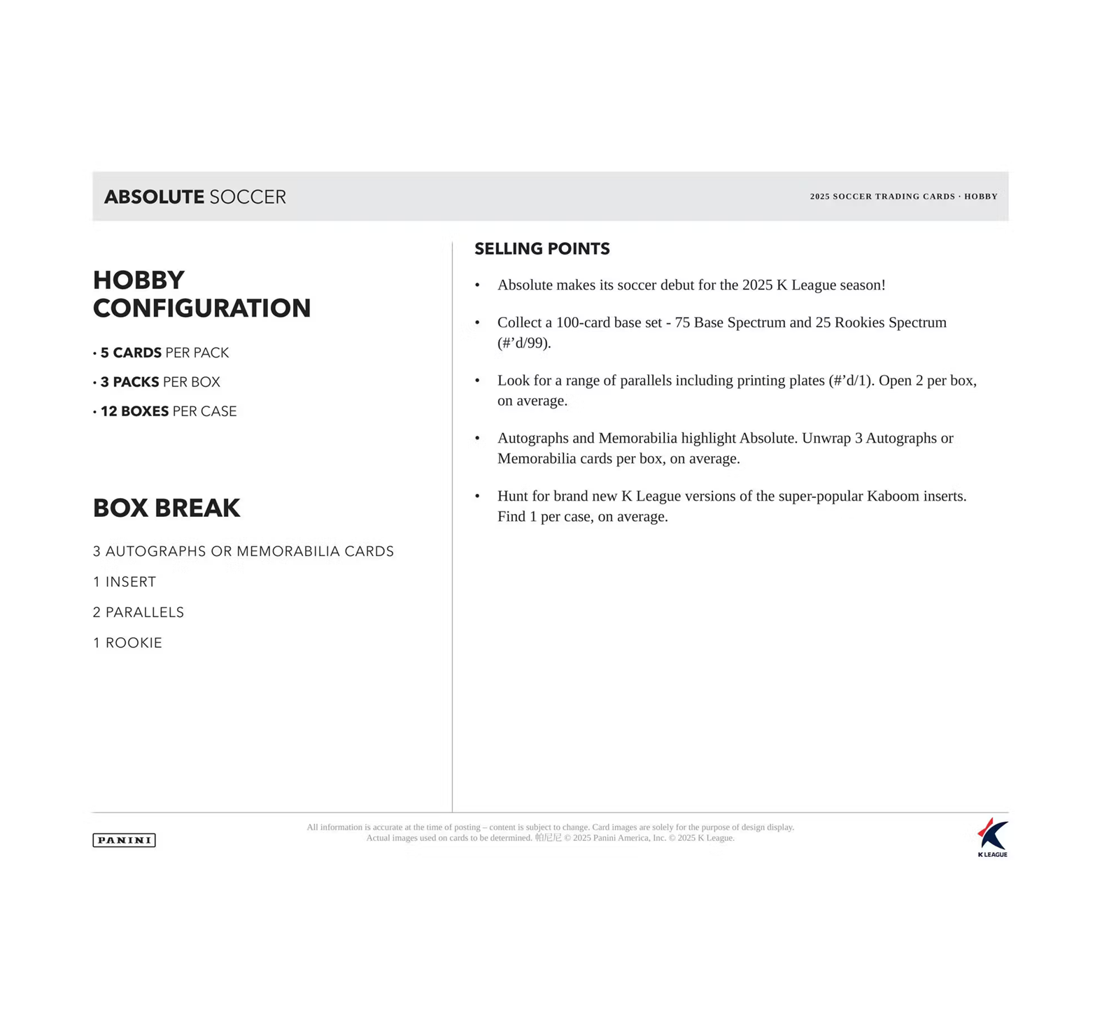 2025 Panini Absolute K League Soccer Hobby 12-Box Case