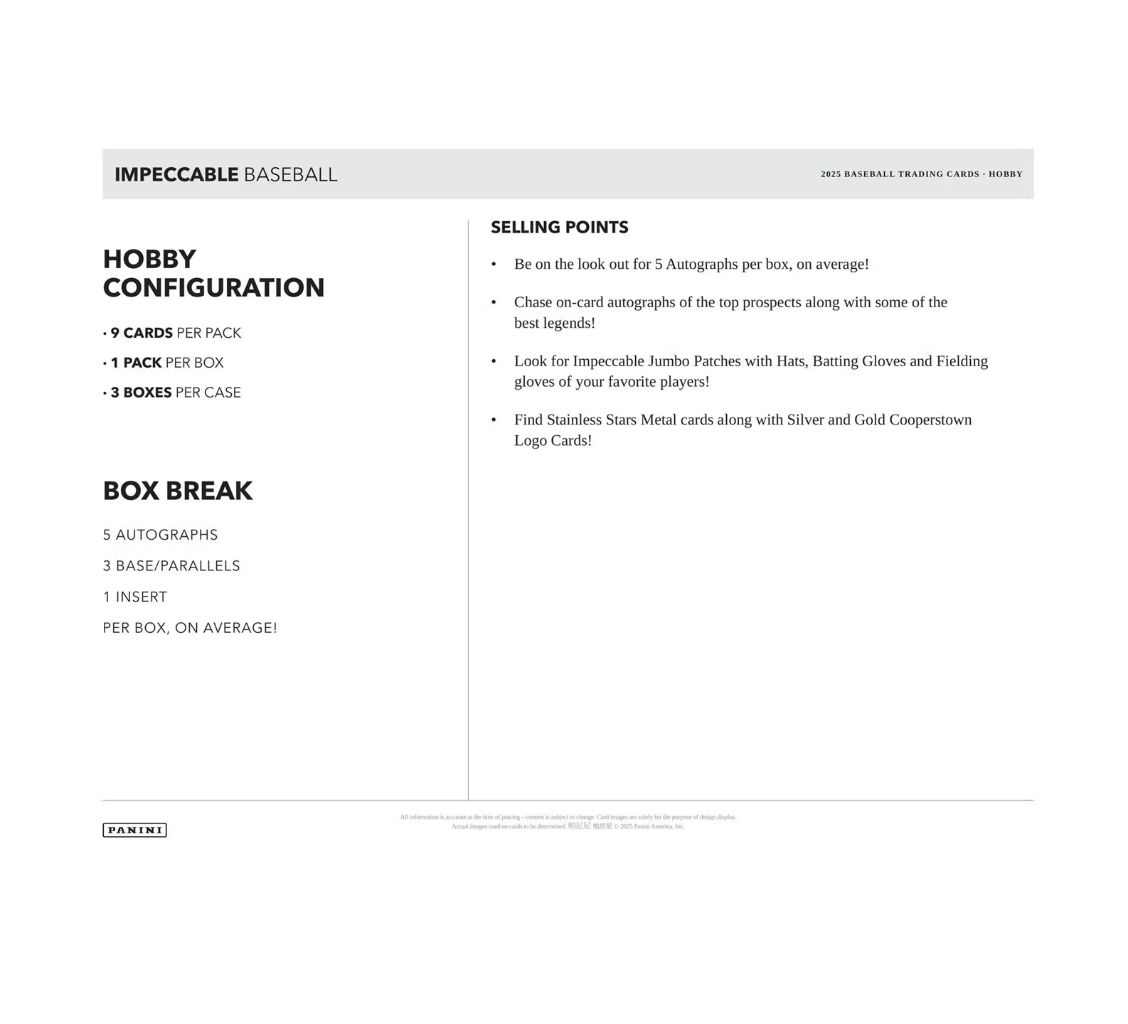 2025 Panini Impeccable Baseball Hobby 3-Box Case