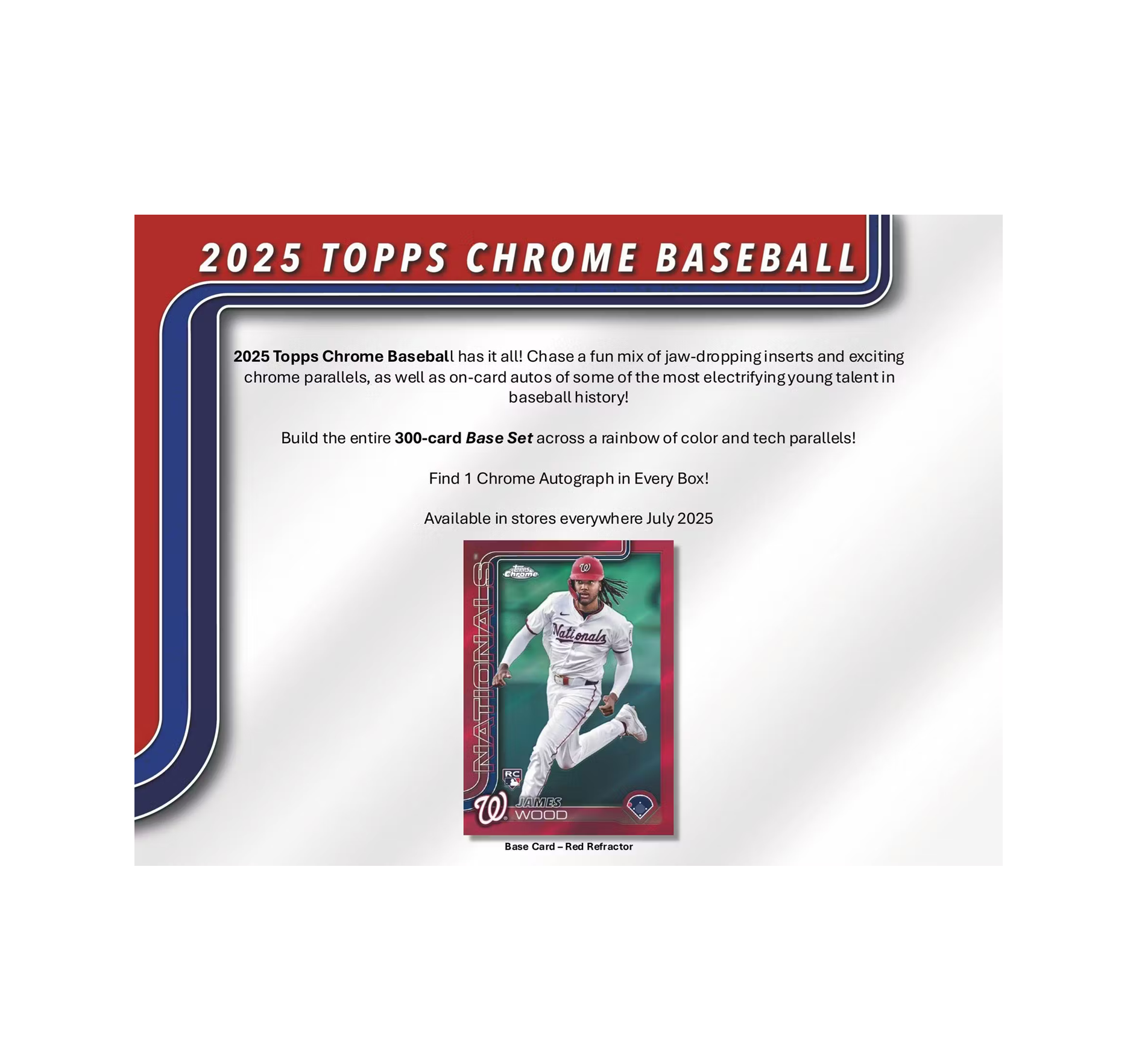 - 2025 Topps Chrome Baseball has it all! Chase a fun mix of jaw-dropping inserts and exciting chrome parallels, as well as on-card autos of some of the most electrifying young talent in baseball history!